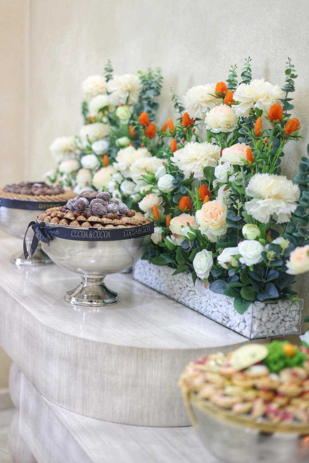 - طاوله مع تزيينها بالورد و الفواحه و الشموع