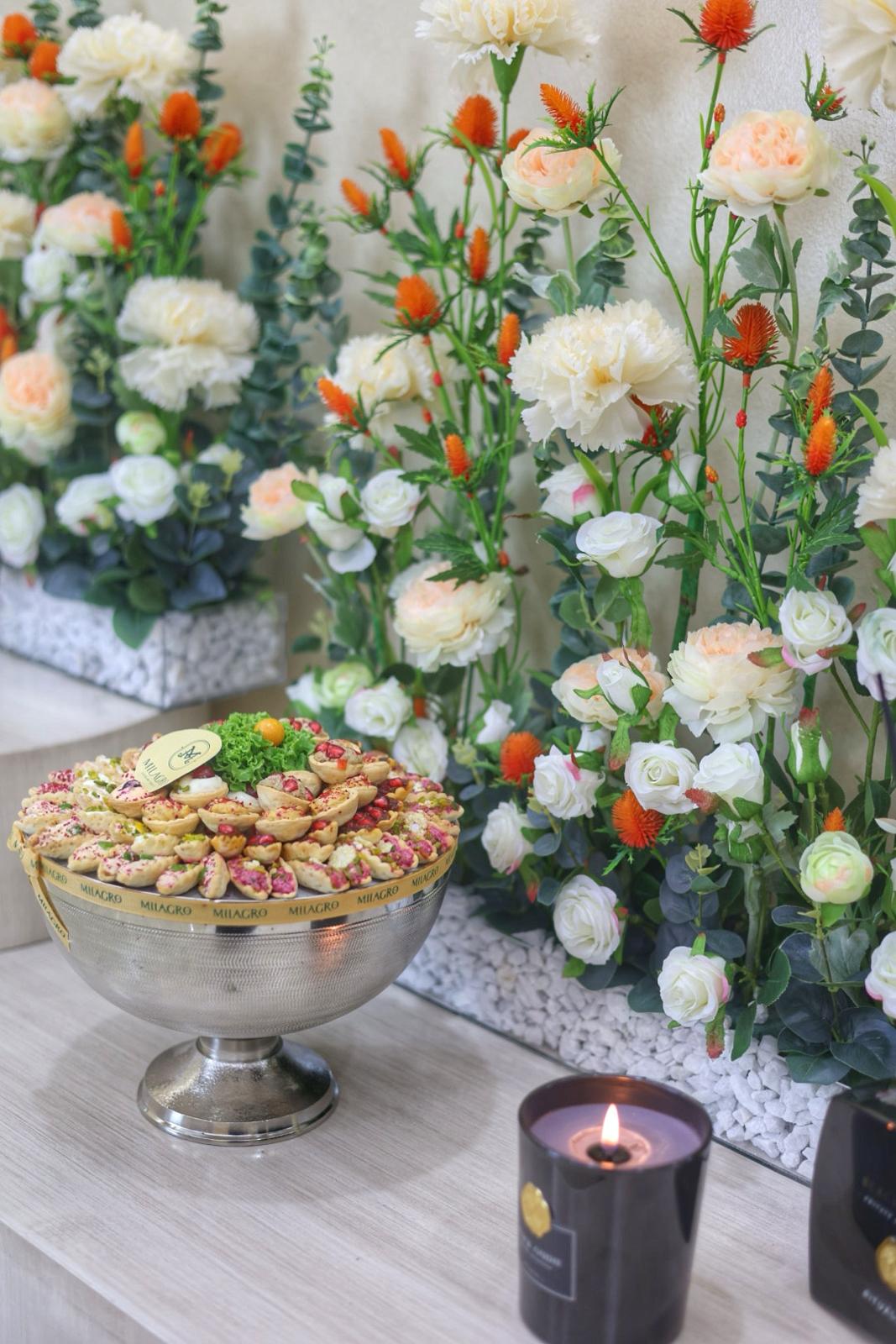 - طاوله مع تزيينها بالورد و الفواحه و الشموع