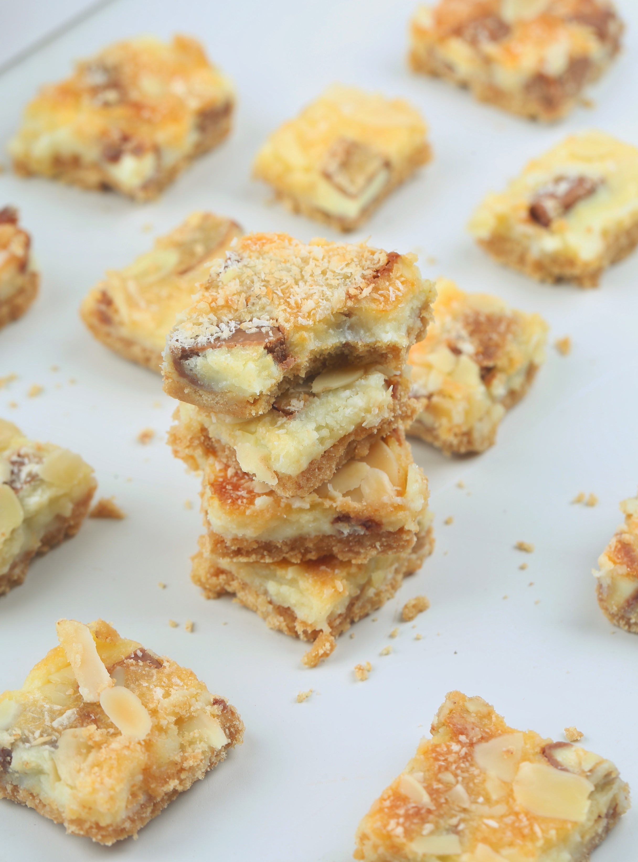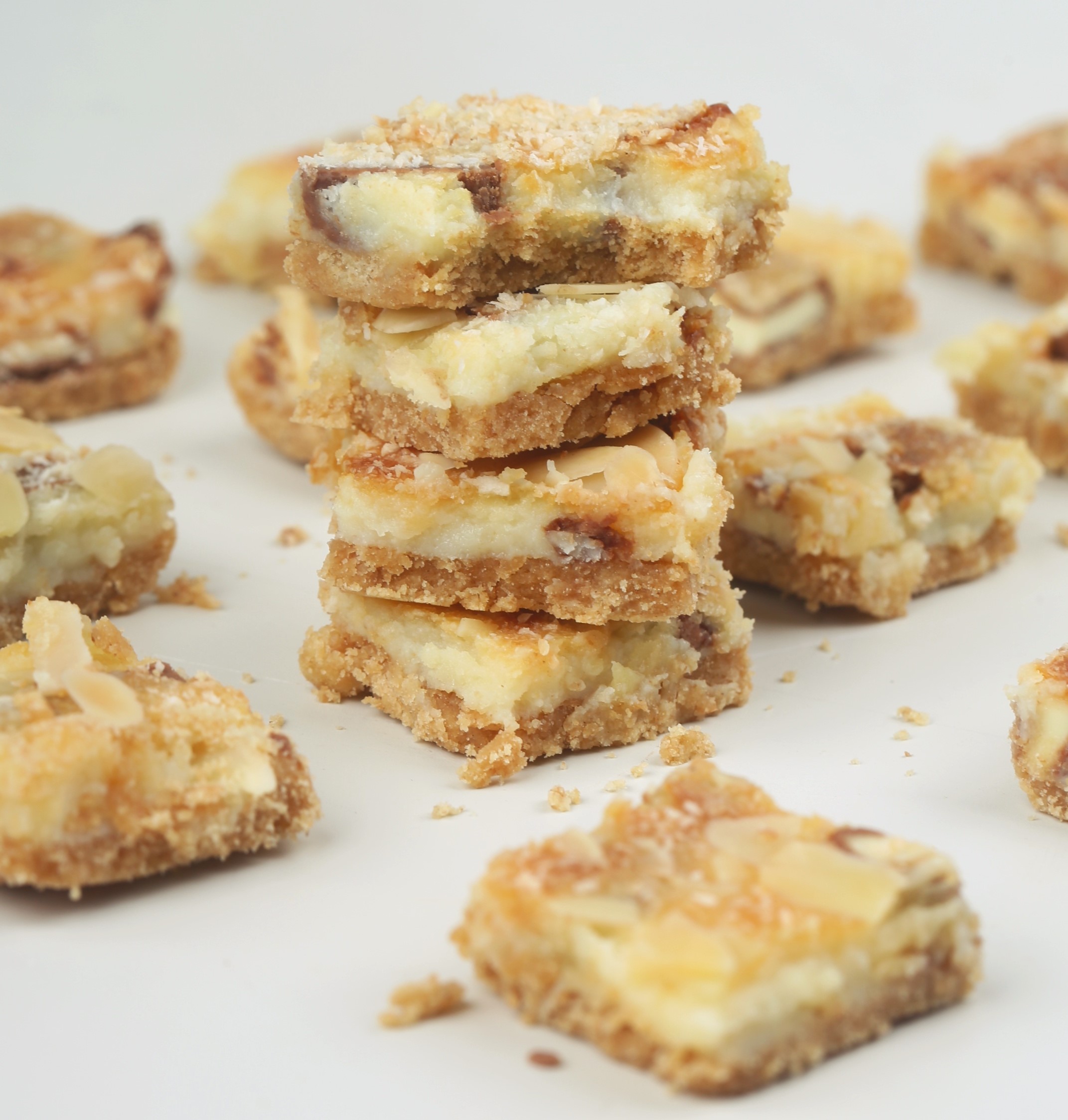 طبقة من البسكويت وطبقة الكريمة والكندر المغطى باللوز والجوز