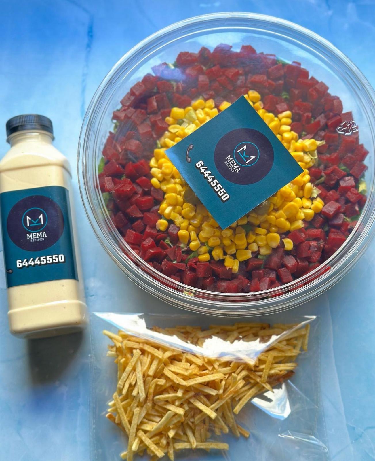 تتكون من خس شمندر ذرة مع الخيار المخلل وبطاط عيدان