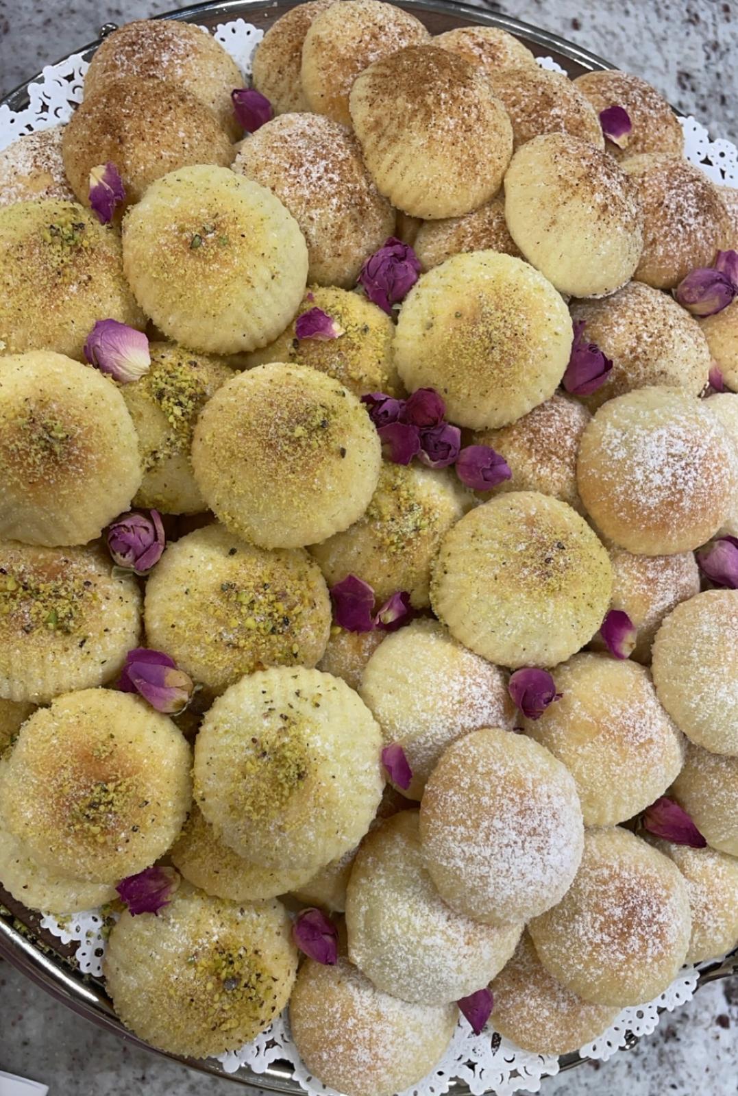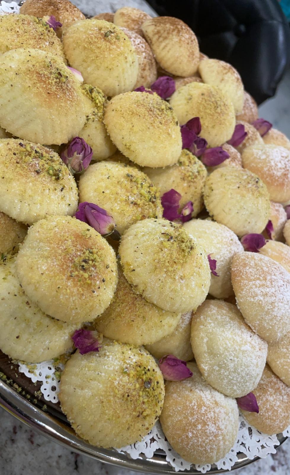 طبق مدور للمناسبات الحجم الكبير يتكون من معمول مكس ميني ( تمر . جوز . فستق ) 70 قطعه