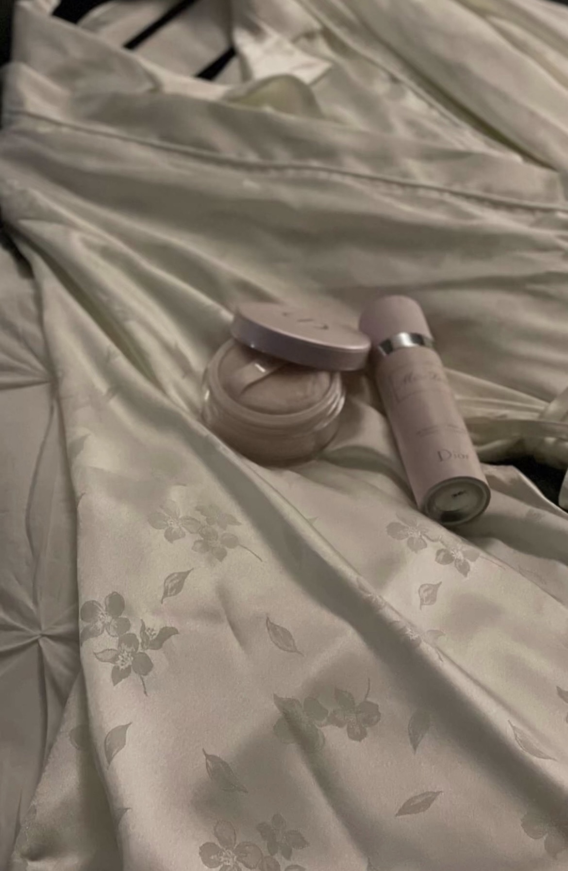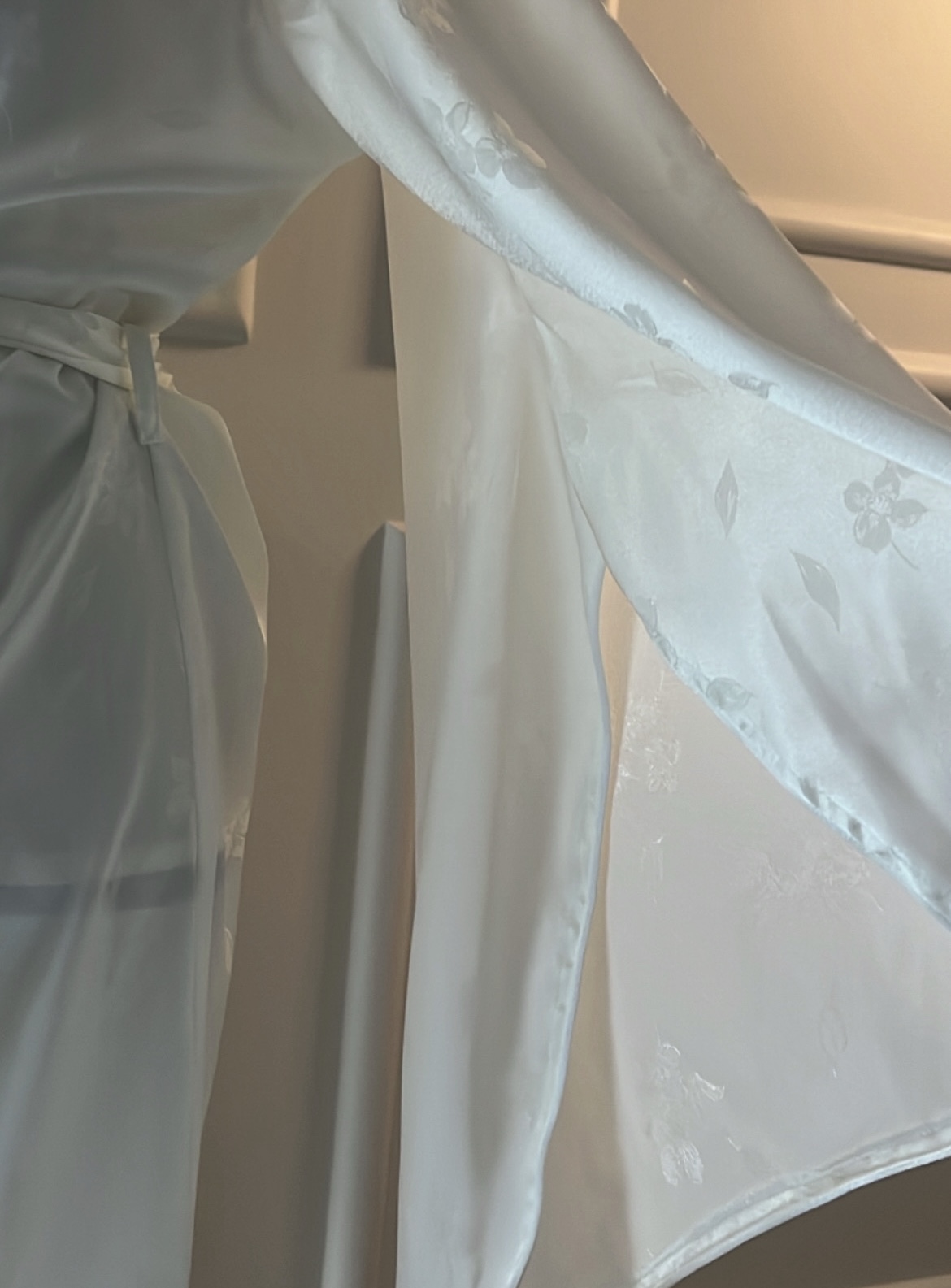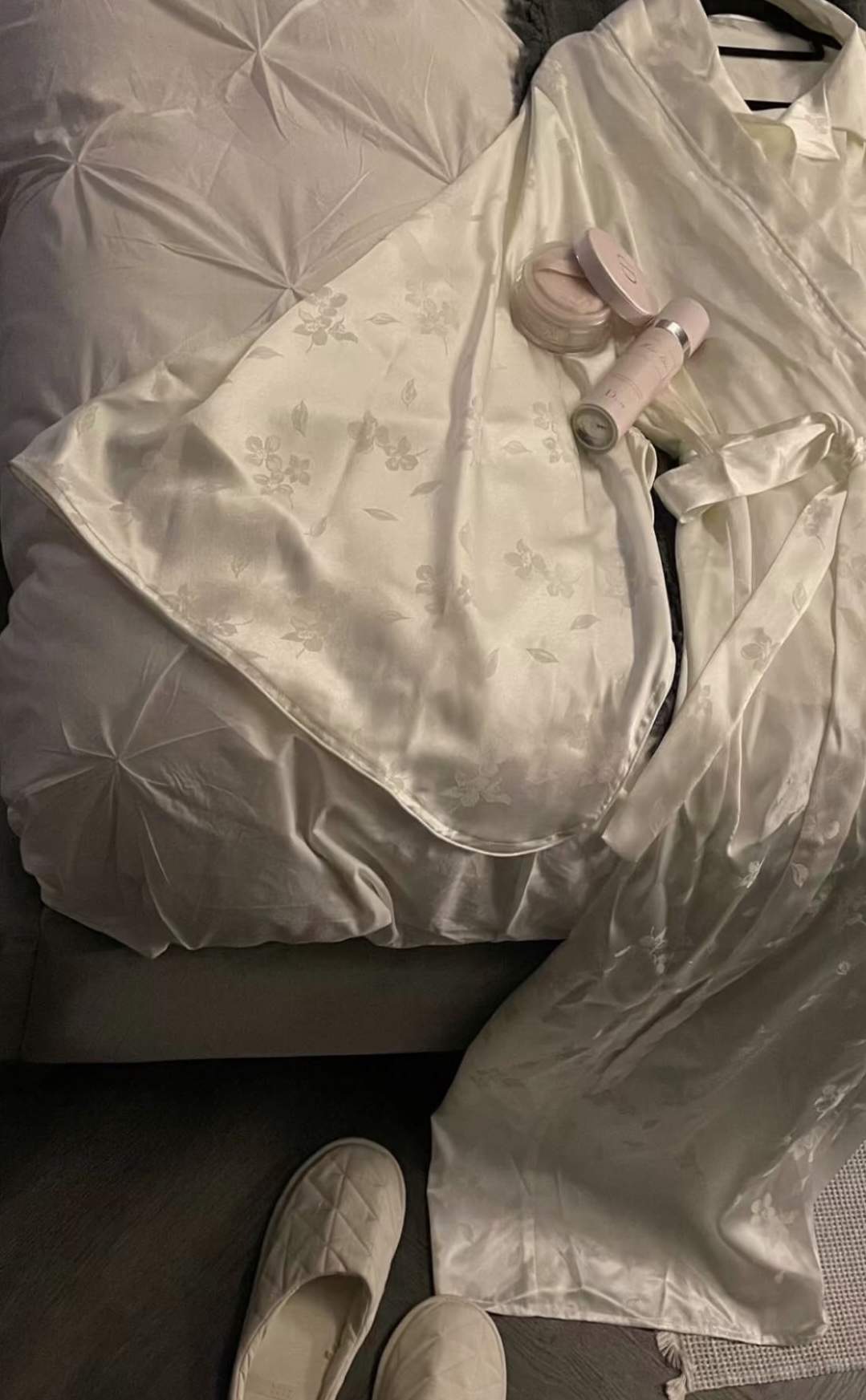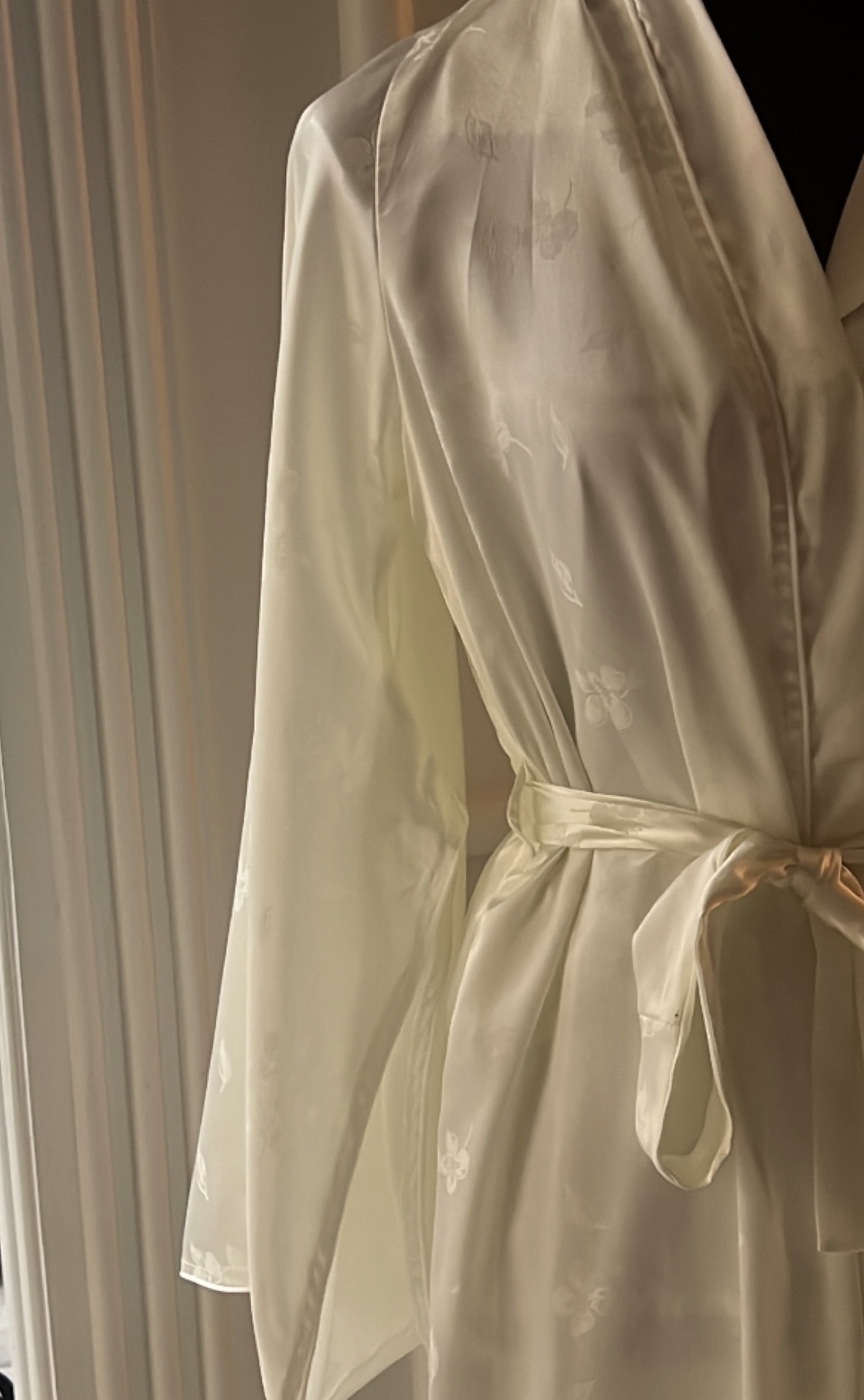 تتميز هذي البجامه بقماش حرير فرنسي مميز عباره عن طقم مكون من ٣ قطع بجامه نصف چم و روب طويل
