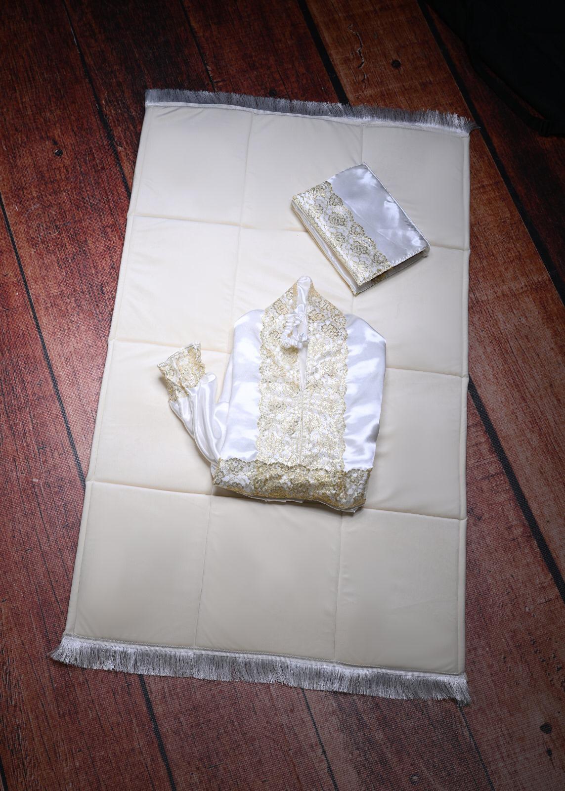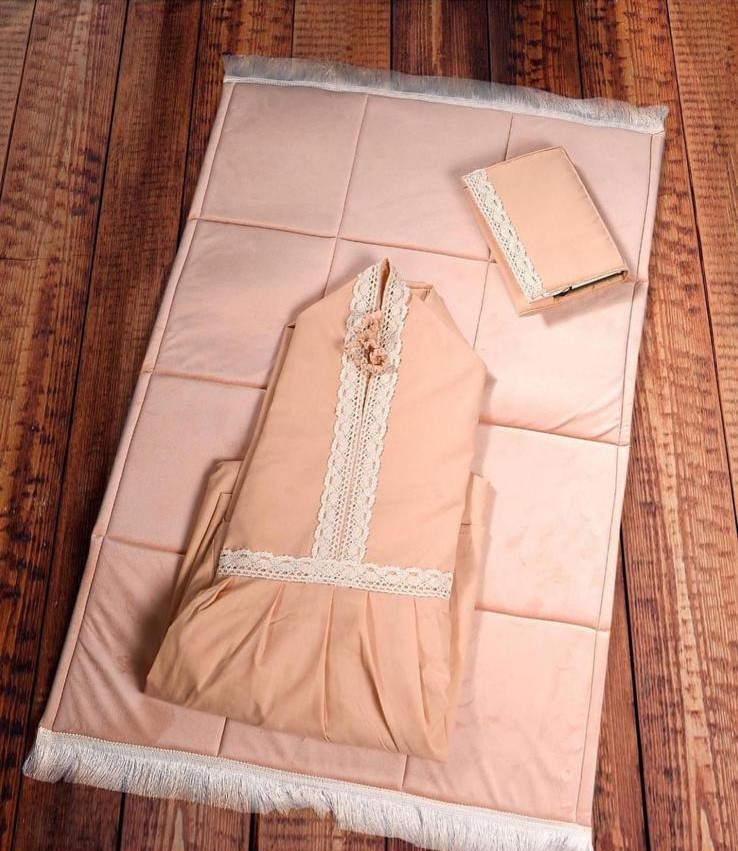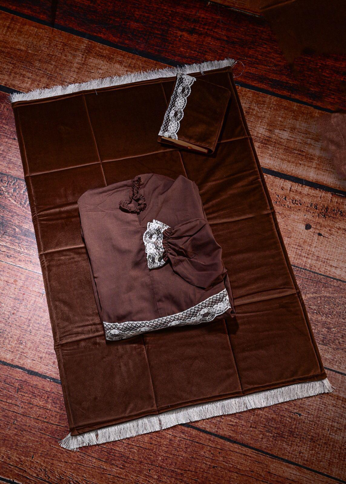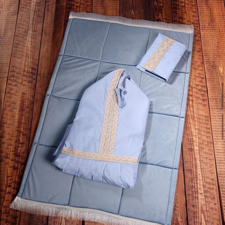 الطقم يتكون من سجاده اسفنج وثوب الصلاة المقاس فري سايس ومصحف مع تلبيسه وفاصل قران