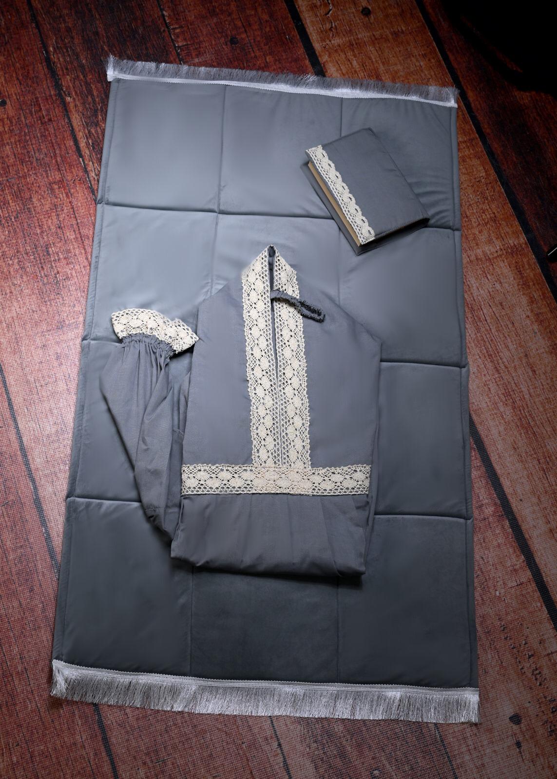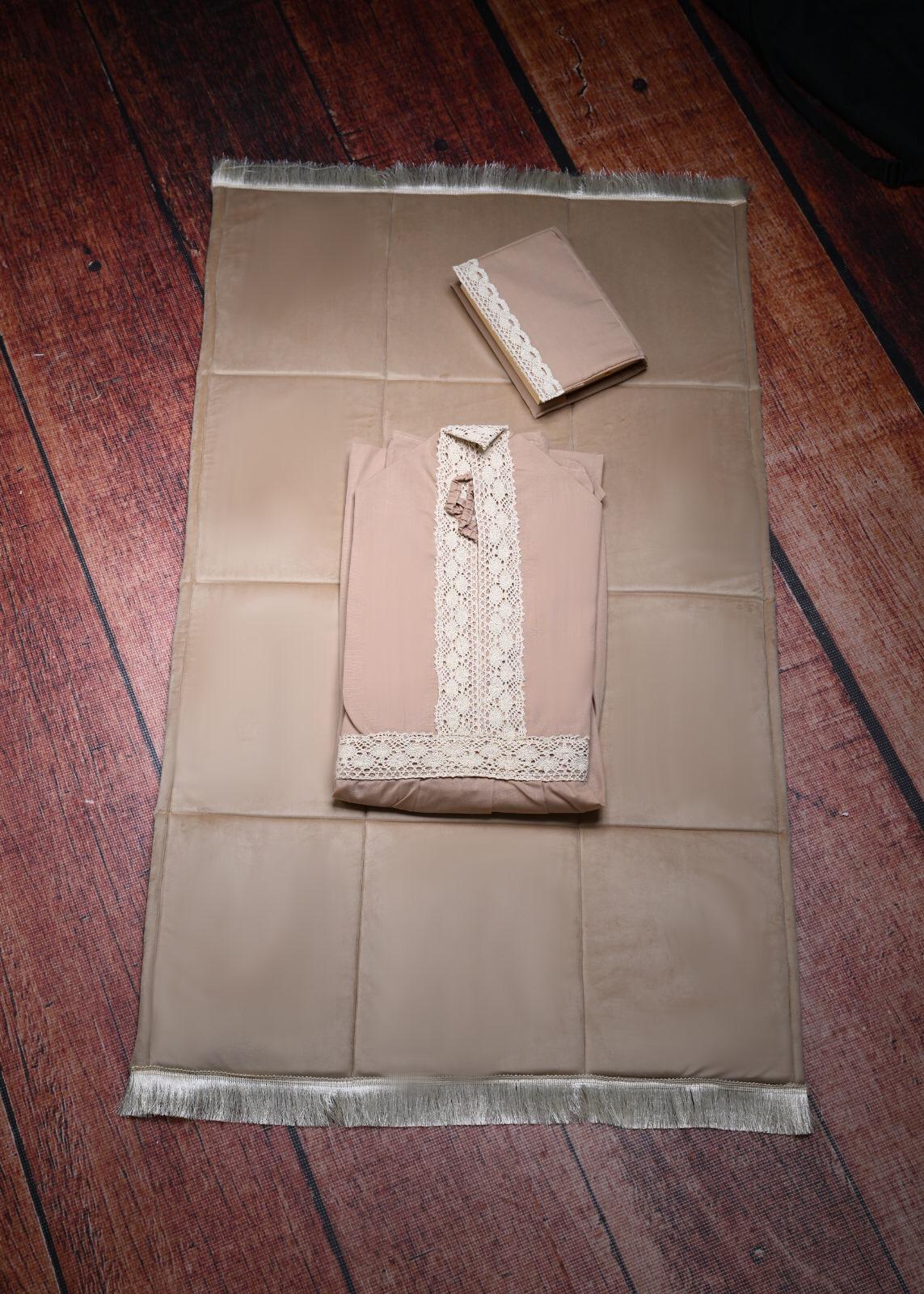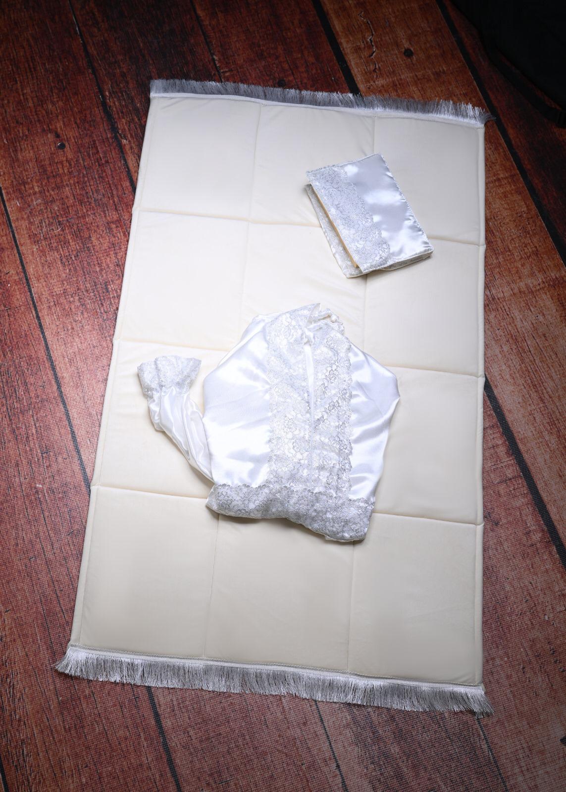 الطقم يتكون من سجاده اسفنج وثوب الصلاة المقاس فري سايس ومصحف مع تلبيسه وفاصل قران