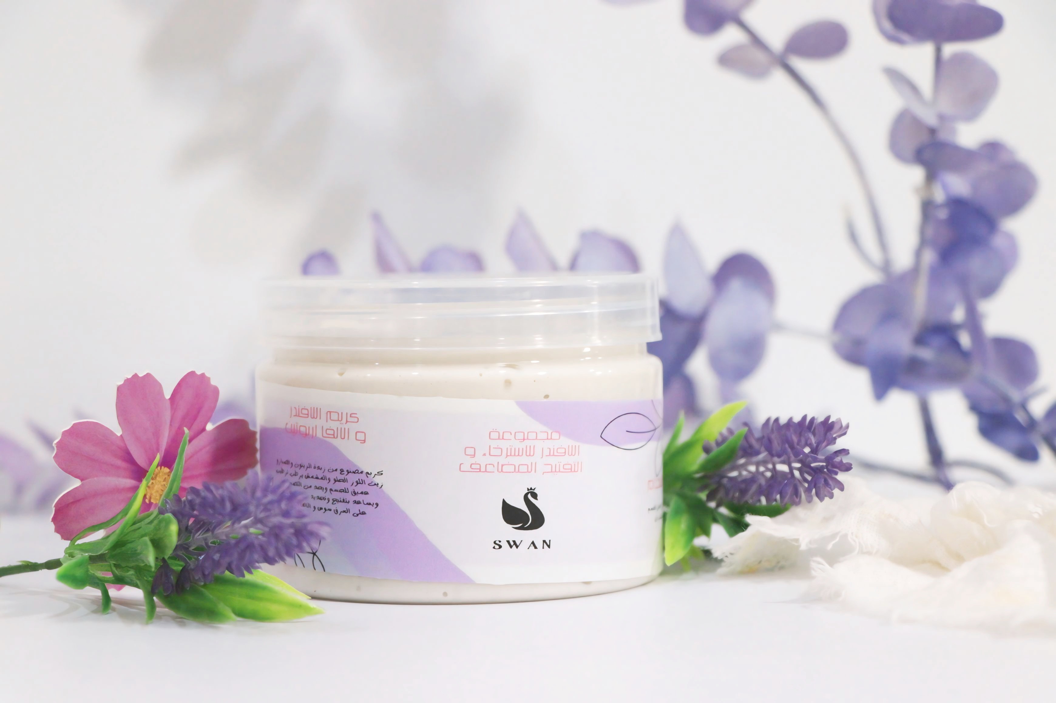 المكونات: مجموعة من الزيوت منها زيت جوز الهند و الجوجوبا و نخالة الأرز ، الزبدات منها الافوكادو و المانجو ، و الخلاصات منها الآذريون و البابونج ، الماء المقطر ، فيتامين e.