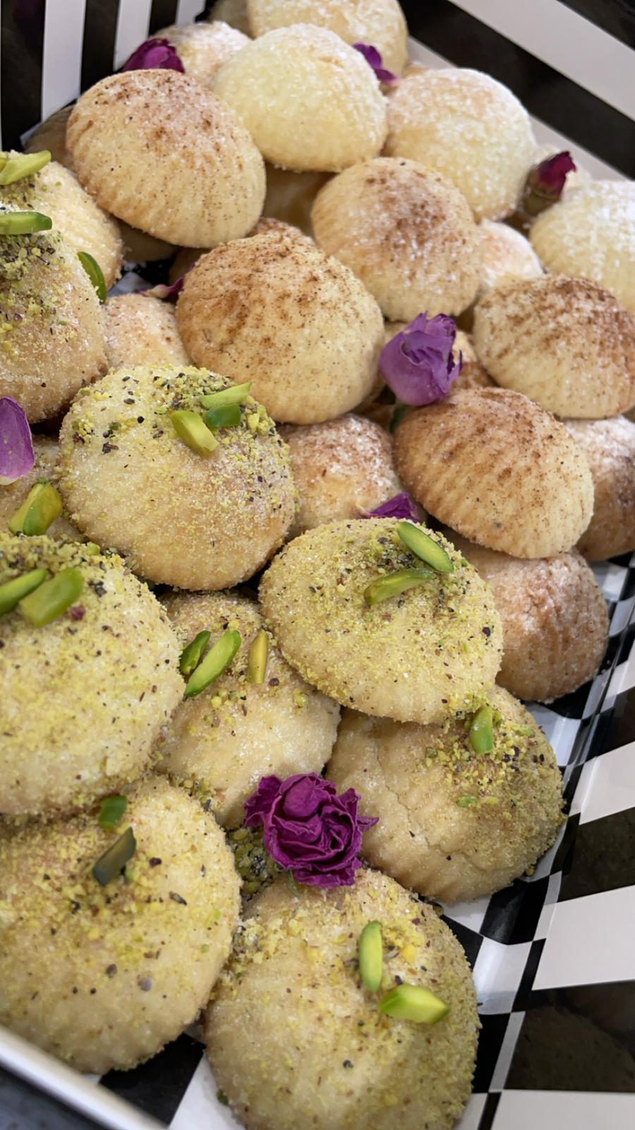 معمول مكس ( تمر , جوز , فستق ) حجم الميني 40 قطعه حجم الوسط
