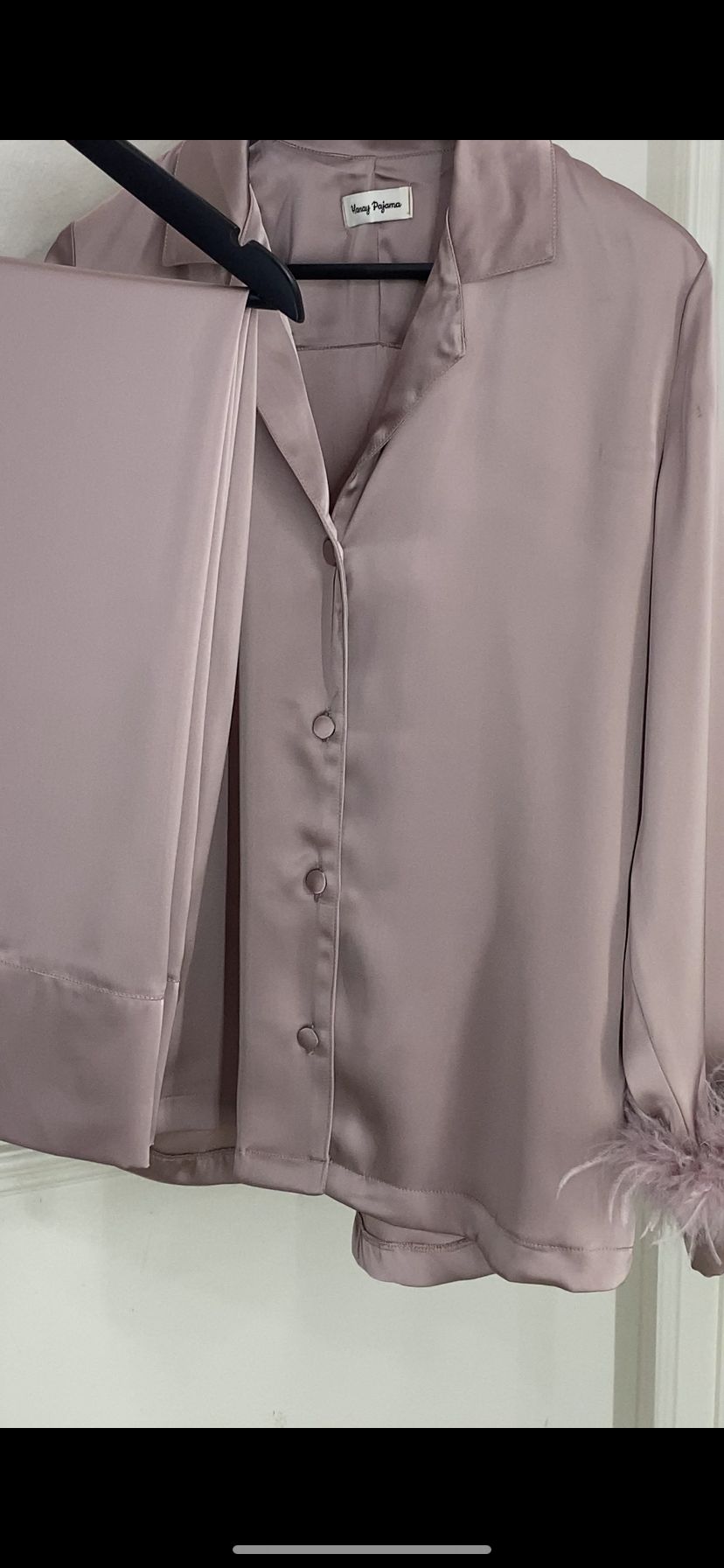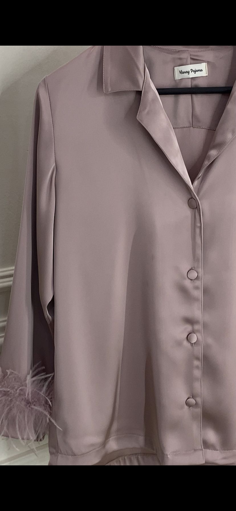 بجامة حرير وردي ملاحظة الريش ينشال ويتركب